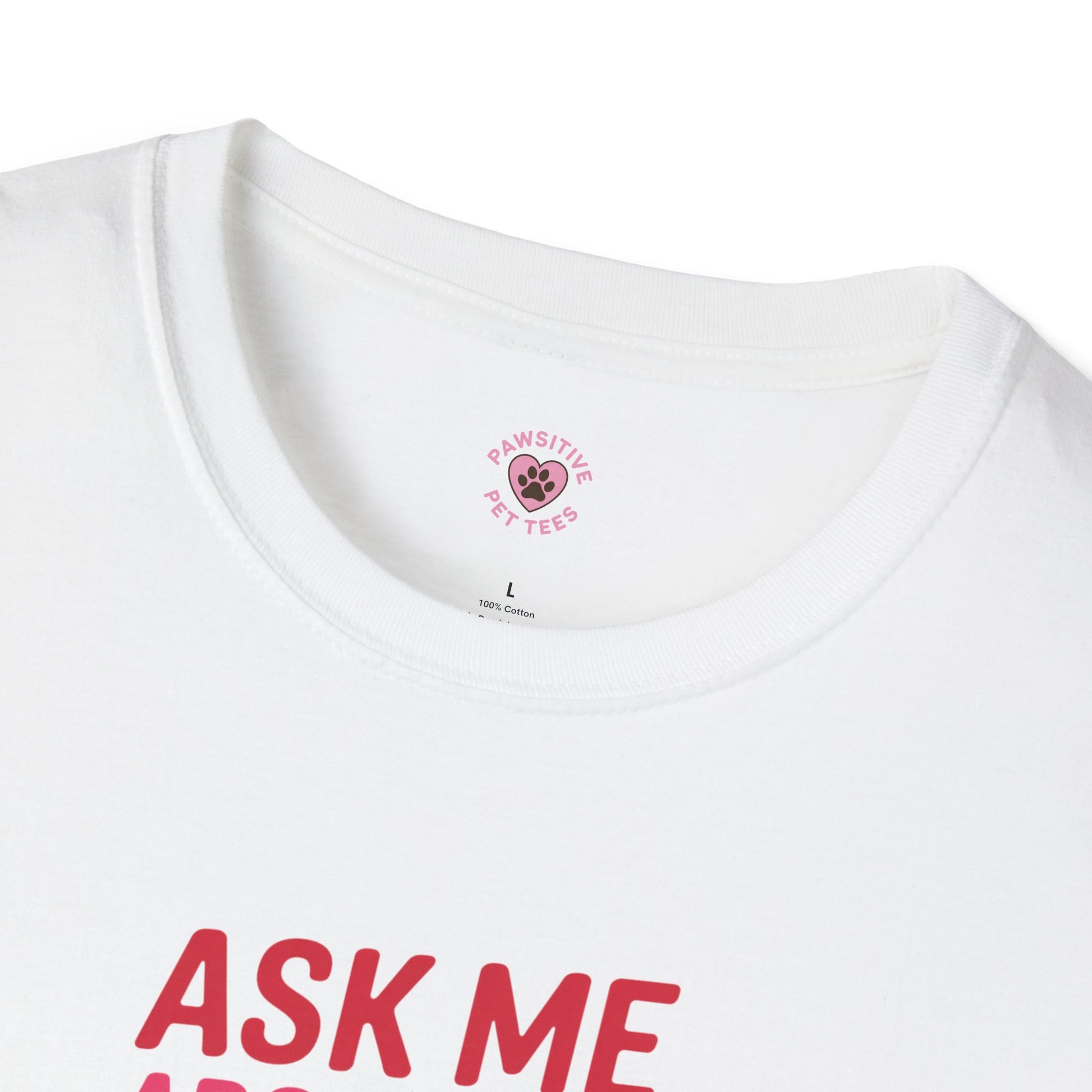 - An original Pawsitive Pet Tees design on a supremely soft 100% cotton t-shirt you'll never want to take off! Unisex ultra comfortable, softstyle tee; 100% ring-spun cotton (fiber content may vary for some colors); Lightweight, breathable, runs true to size; Proudly Designed, Printed, Packaged and Shipped in USA; Please refer to size guide for your perfect fit.