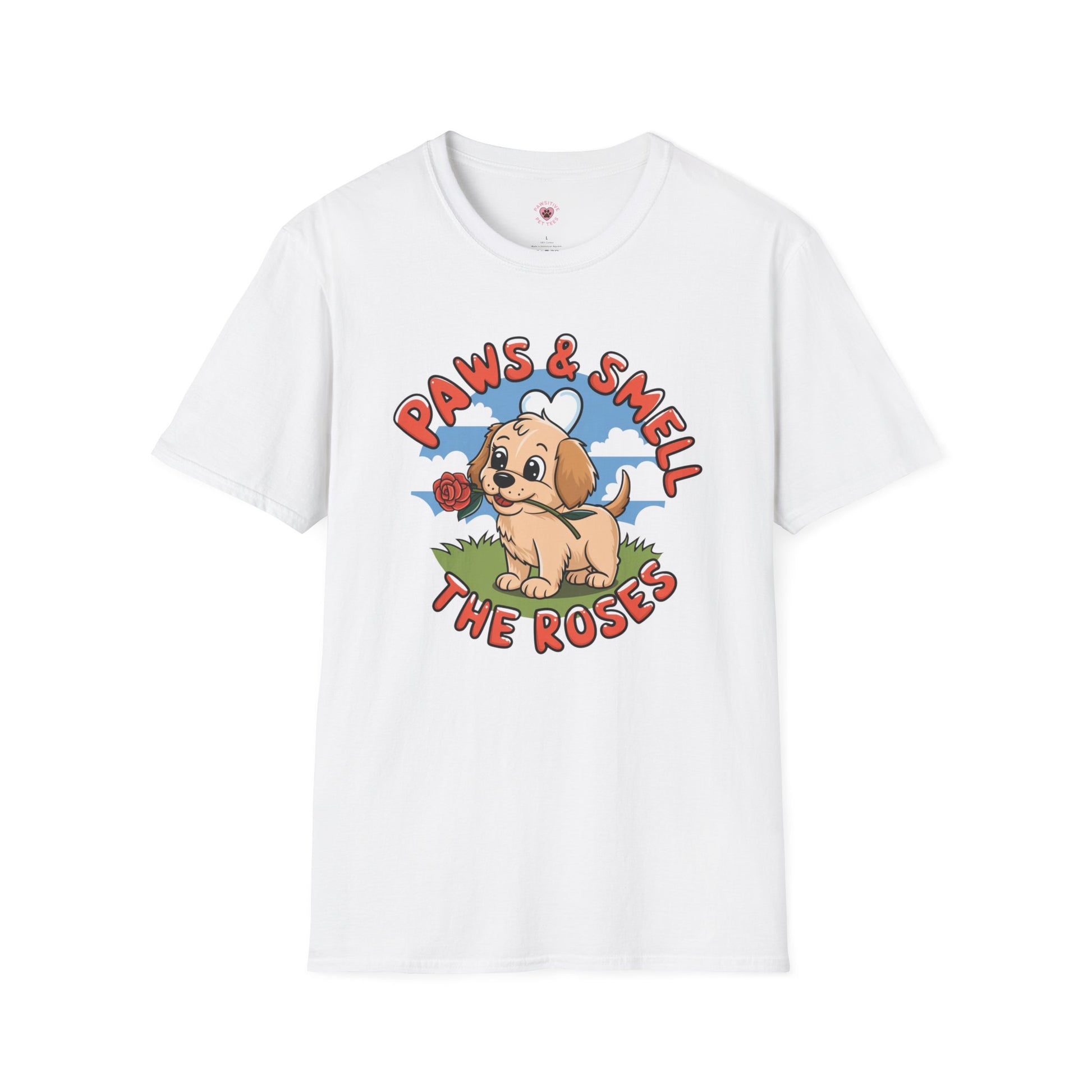 - An original Pawsitive Pet Tees design on a supremely soft 100% cotton t-shirt you'll never want to take off! Unisex ultra comfortable, softstyle tee; 100% ring-spun cotton (fiber content may vary for some colors); Lightweight, breathable, runs true to size; Proudly Designed, Printed, Packaged and Shipped in USA; Please refer to size guide for your perfect fit.