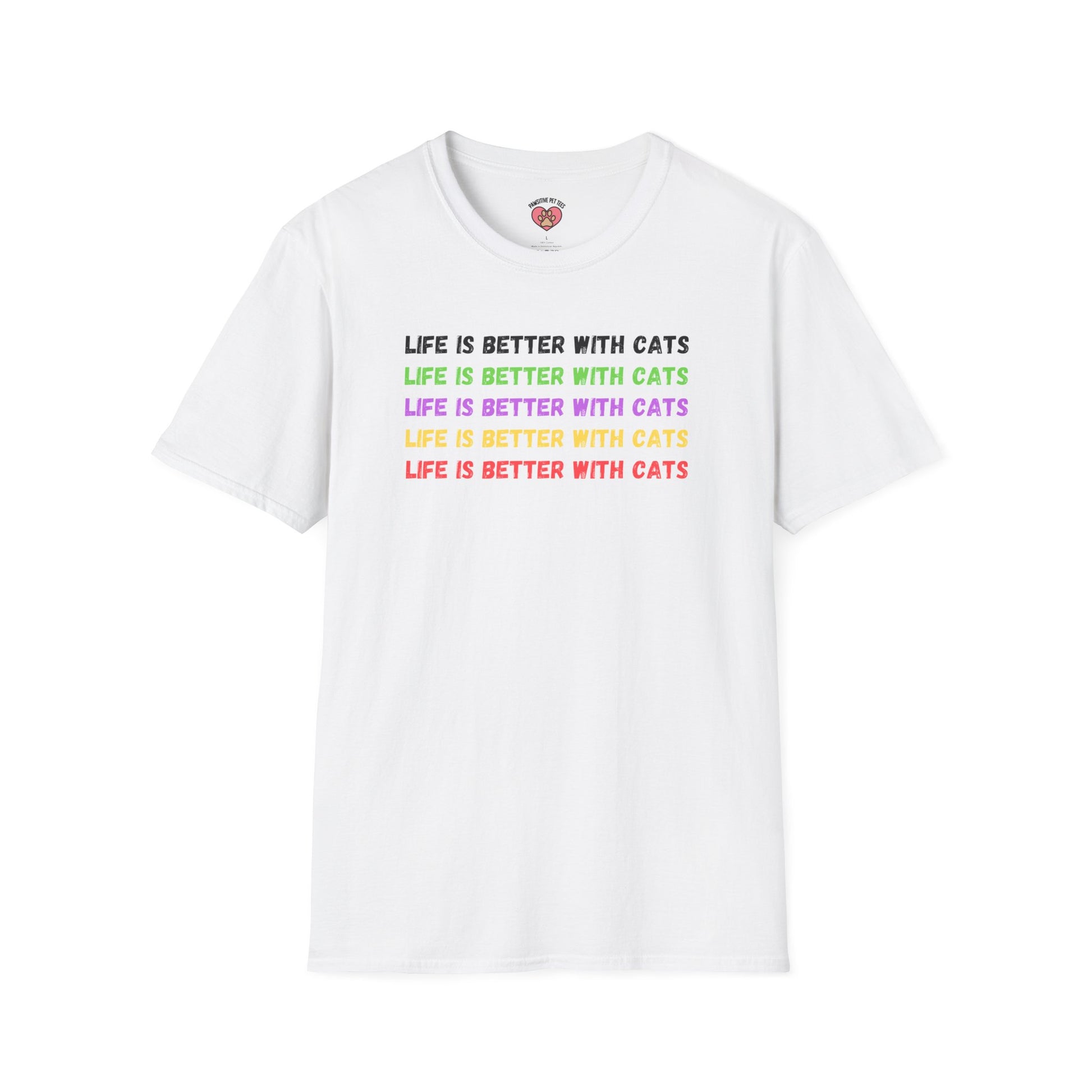 - An original Pawsitive Pet Tees design on a supremely soft 100% cotton t-shirt you'll never want to take off! Unisex ultra comfortable, softstyle tee; 100% ring-spun cotton (fiber content may vary for some colors); Lightweight, breathable, runs true to size; Proudly Designed, Printed, Packaged and Shipped in USA; Please refer to size guide for your perfect fit.